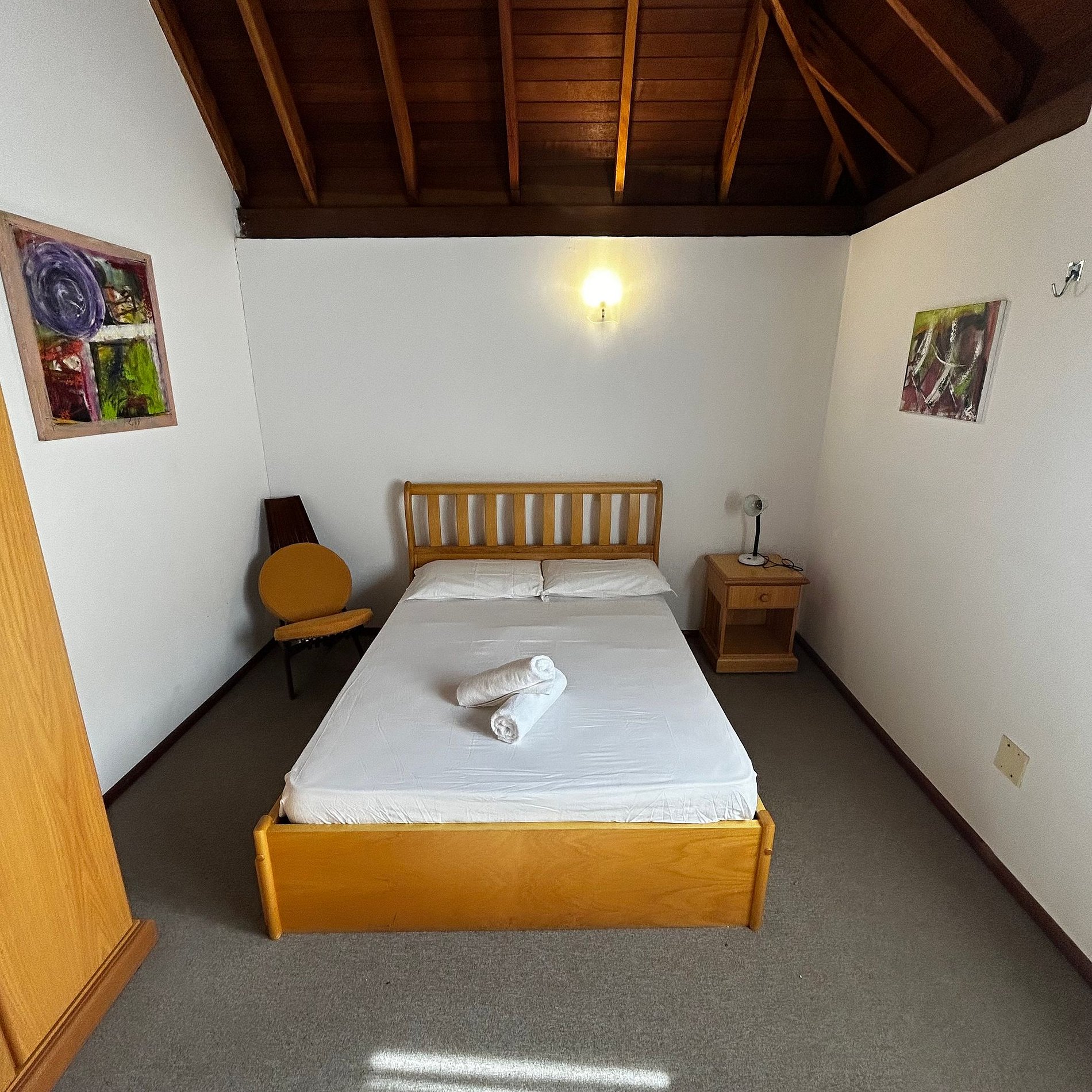 Segundo quarto: equipado com duas camas de solteiro e uma cama auxiliar extra, ideal para acomodar crianças ou amigos.