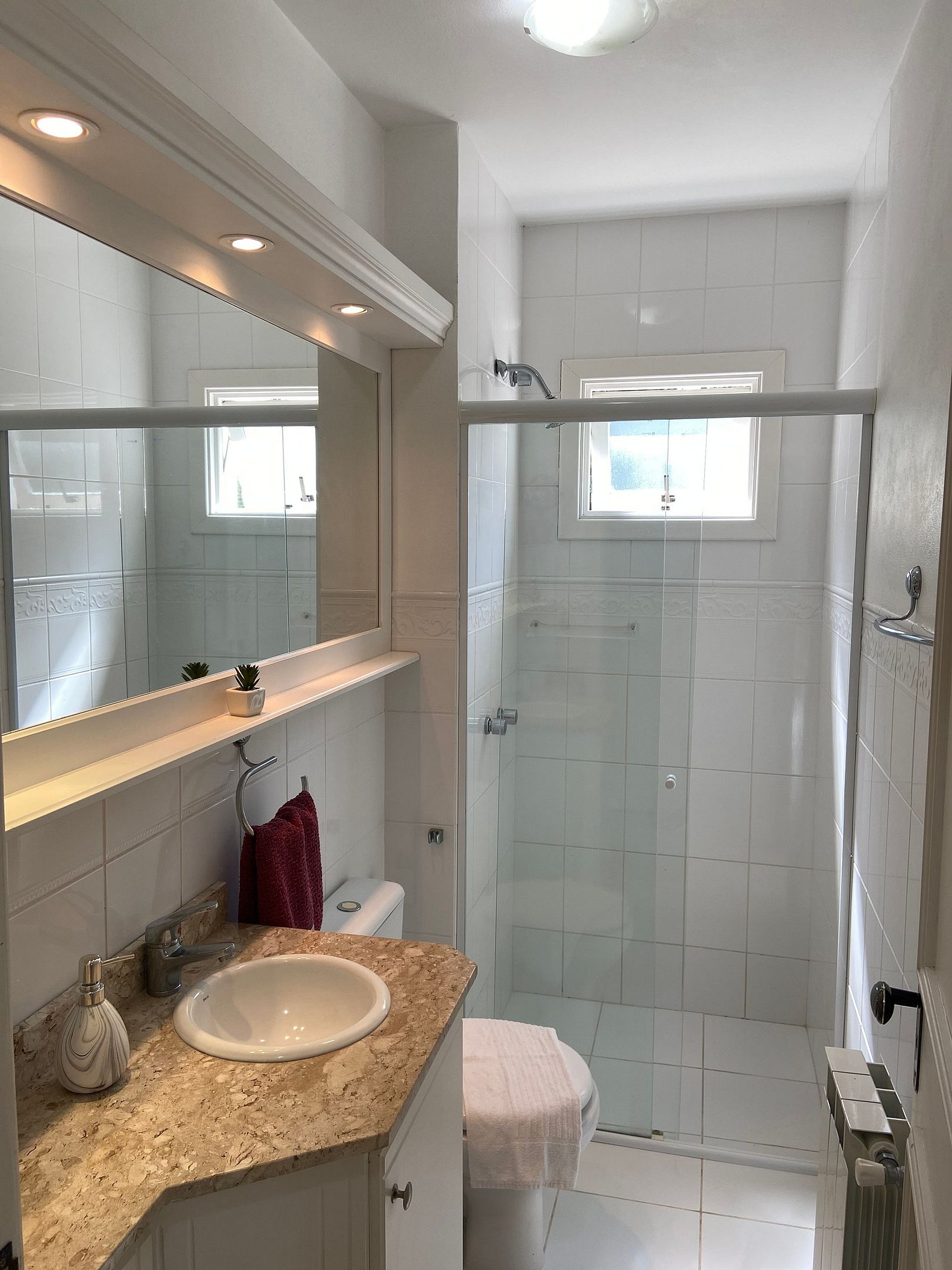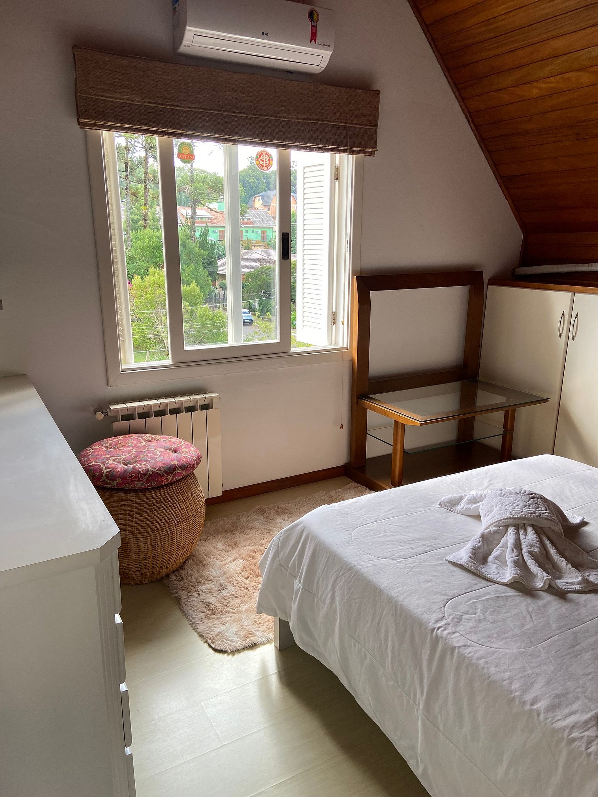 Descubra o Conforto e a Praticidade do Nosso Apartamento em Gramado Se você está procurando o lugar perfeito para se hospedar em Gramado, o nosso apartamento oferece tudo o que você precisa para uma estadia confortável e acolhedora. Com uma estrutura completa e um ambiente que une praticidade e charme, garantimos que sua experiência será única. Confira todos os detalhes: Estrutura do Apartamento O apartamento conta com 4 quartos bem distribuídos, sendo 1 suíte, ideal para acomodar sua família ou grupo de amigos com conforto. Parte inferior: 1 suíte com cama de casal. 1 quarto com 2 camas de solteiro. Parte superior: 1 quarto de casal. 1 quarto com 2 camas de solteiro e auxiliar, que podem ser unidas para formar uma cama de casal, se preferir. Além disso, temos a disponibilidade de berço, que pode ser solicitado no momento da reserva. Banheiros e Áreas Comuns São 3 banheiros no total, sendo 2 na parte inferior e 1 na parte superior, oferecendo total comodidade para todos os hóspedes. Na sala, você encontrará uma lareira que traz um charme especial ao ambiente, além de um sofá confortável para relaxar após um dia de passeios por Gramado. Cozinha Completa e Equipamentos A cozinha está equipada com todos os utensílios necessários para tornar sua estadia ainda mais prática: pratos, copos, taças, talheres, panelas, geladeira, fogão e micro-ondas. Caso precise de mais conforto, todos os quartos e a sala possuem ar condicionado quente e frio, garantindo uma temperatura agradável em qualquer estação do ano. Entretenimento e Conectividade Para quem gosta de ficar conectado ou relaxar com uma boa programação, nossa TV com comando de voz oferece acesso a Netflix e outros conteúdos, para que você aproveite a sua estadia com entretenimento de qualidade. Além disso, temos Wi-Fi gratuito, para que você possa se manter conectado com amigos e familiares, ou até mesmo trabalhar, se necessário. Facilidades e Conforto Para sua conveniência, disponibilizamos: 1 Jogo de roupas de cama e 1 cobertor/edredom por cama. 1 Toalha de banho por hóspede e 1 toalha de rosto por banheiro. Tapete de saída de banho por banheiro. Secador de cabelo e ferro de passar roupa, para que você se sinta em casa, com todo o cuidado e conforto. Estacionamento O apartamento dispõe de 1 box na garagem para o estacionamento de 1 carro, garantindo praticidade e segurança para quem viaja de carro. Cuidados com a Limpeza Nosso compromisso é com o bem-estar dos nossos hóspedes. Por isso, oferecemos itens de higiene como sabonete em barra, sabonete líquido e papel higiênico. Importante: Caso ocorra algum dano ou mancha nas toalhas de banho, roupas de cama ou pisos, será cobrada uma taxa extra para limpeza ou troca